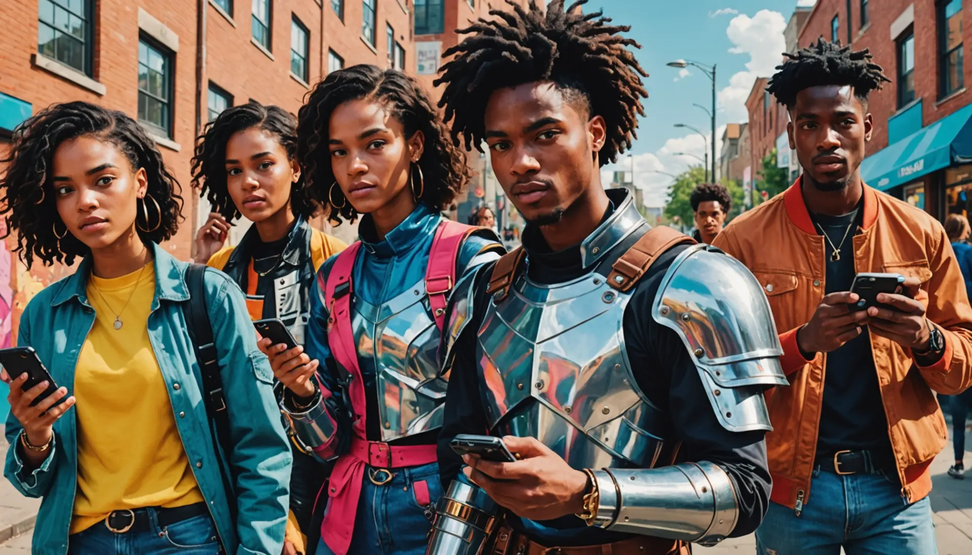 Editorial illustration of people role-playing in public with the text concept of larp meaning slang 2026 implied Editorial illustration of people role-playing in public with the text concept of larp meaning slang 2026 implied